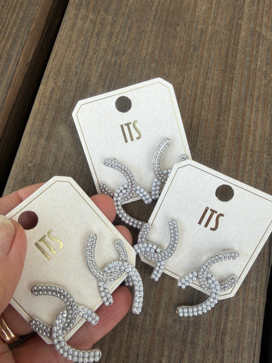 PEARL PAVE HORSESHOE EARRING