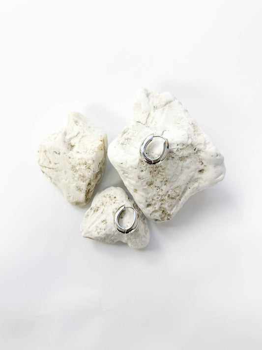 Small Oval Huggie Hoops, Silver