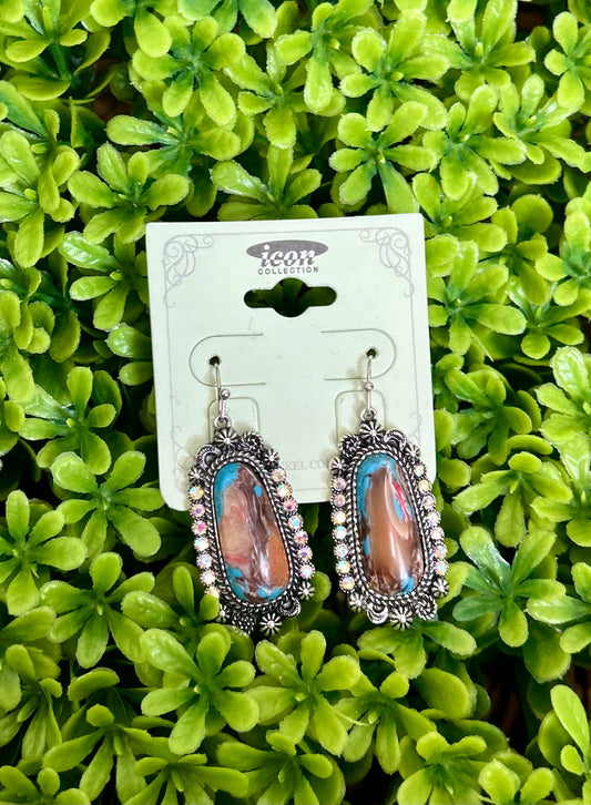Bisbee Turquoise & Rhinestone Pendant Earrings