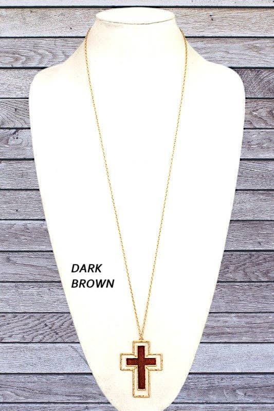 FRAMED WOODEN CROSS PENDANT LONG necklace