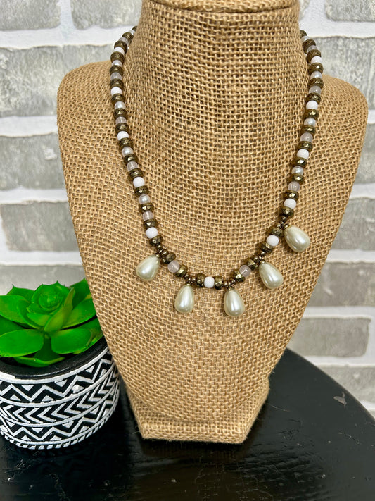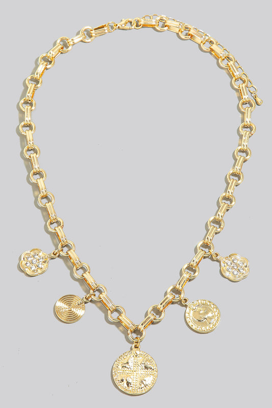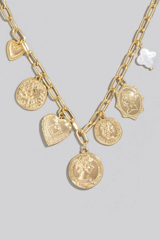 Pearl Clover Coins And Heart Locket Charms Necklace