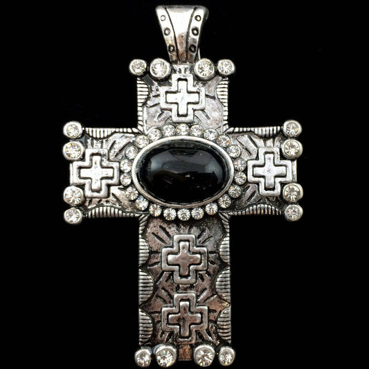 Western Cross Black & Rhinestone Pendant
