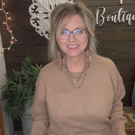 This embossed sweater doesn't just celebrate your love for coffee—it envelops you in exceptional softness and comfort while making a stylish impression. Elevate your daily wardrobe with this cozy piece that perfectly combines fashion and your passion for coffee.